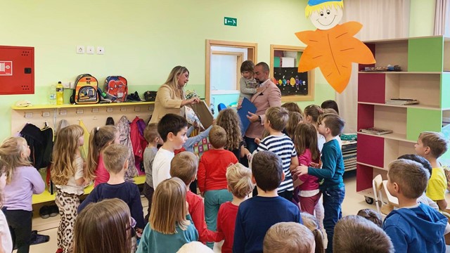Mališane je obradovao s velikim košarama prepunih slatkiša, ali i voća za što nisu krili oduševljenje. Dok su učiteljicama, nastavnicama i tetama podijelili male znakove pažnje u obliku poklon paketa, svakom su odjeljenju uručili poklon bon vrijednosti od . , za kupnju potrepština i inventara po izboru i potrebama ravnatelja i zaposlenika, ukupne vrijednosti . , .
