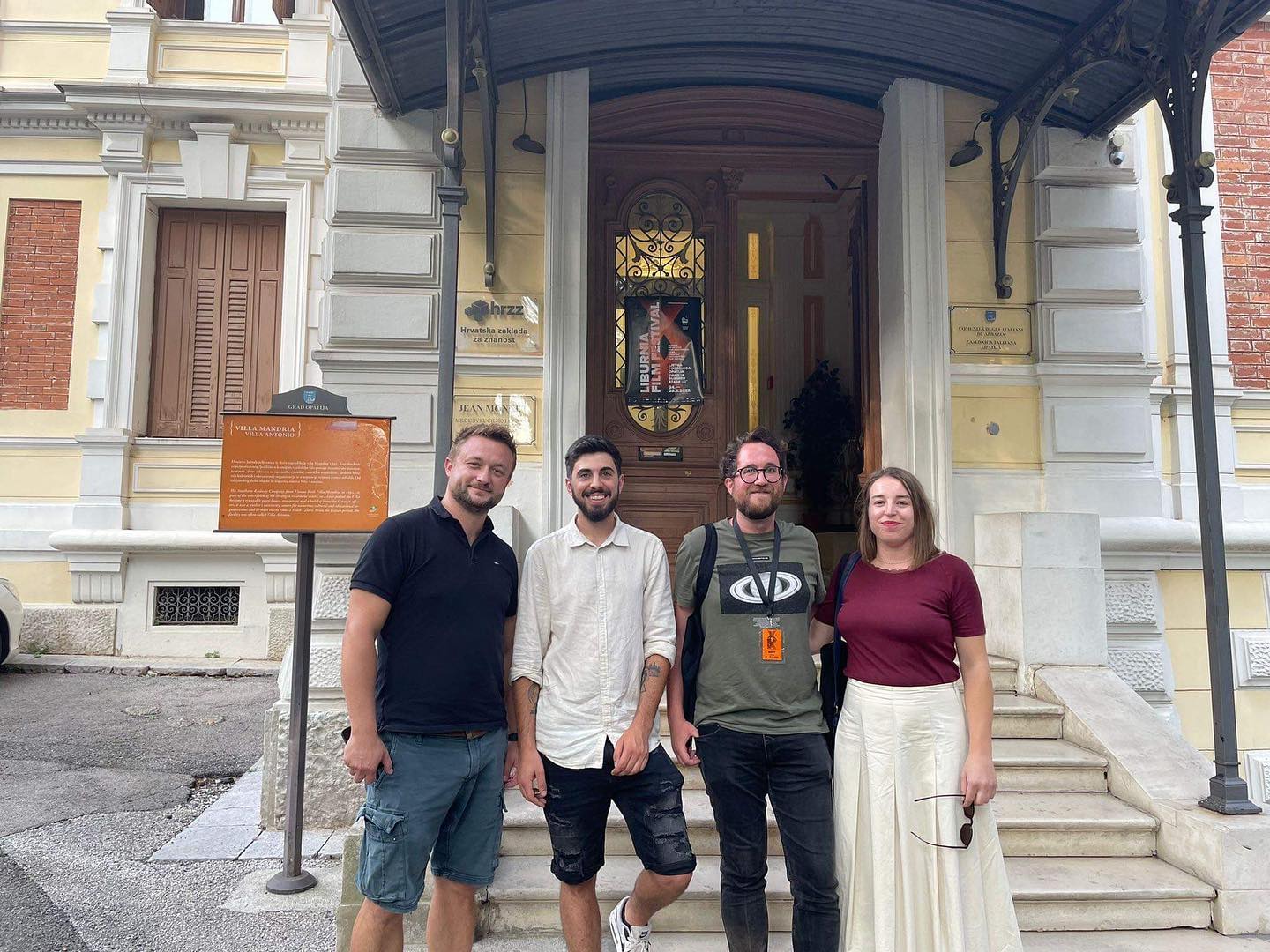 Ekipa filma Izvorni sjaj na premijeri filma u sklopu LFF-a (Sanel Isanović, Mateo Jurčić, Toni Juričić, Bianca Dagostin), izvor fotografije: Facebook