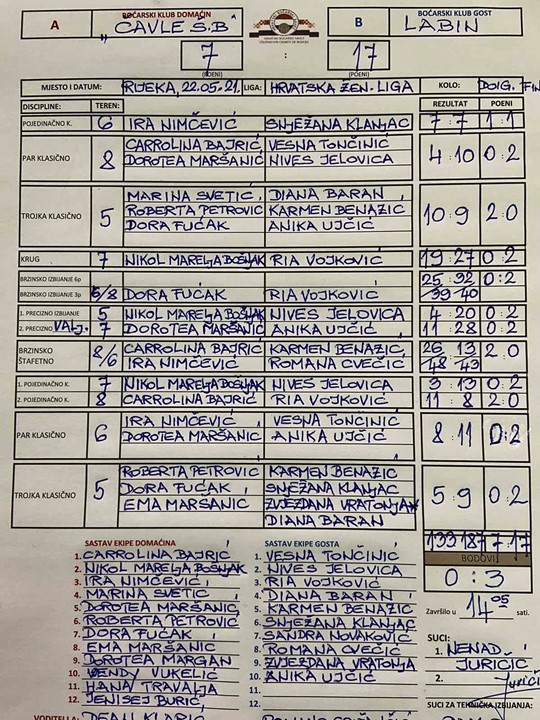 Teško je nekoga istaknuti, više je boćarica bilo izrazito raspoloženo, a naslov su danas osvojile: Vesna Tončinić, Nives Jelovica, Ria Vojković, Diana Baran, Karmen Benazić, Snježana Klanjac, Sandra Novaković, Romana Cvečić, Zvjezdana Vratonja i Anika Ujčić.