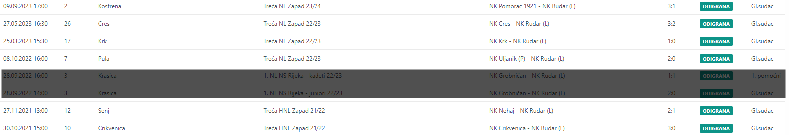 U protekle dvije taj riječki sudac Labinjanima je arbitrirao u šest prvenstvenih susreta. Sve u gostima, protiv Pomorca 1921, Cresa, Krka, Uljanika, Nehaja i Crikvenice. Pogađate, Rudar u tim susretima nije osvojio nijedan bod uz gol-razliku 4:14. Možda se bolje suzdržati od daljnjih komentara.