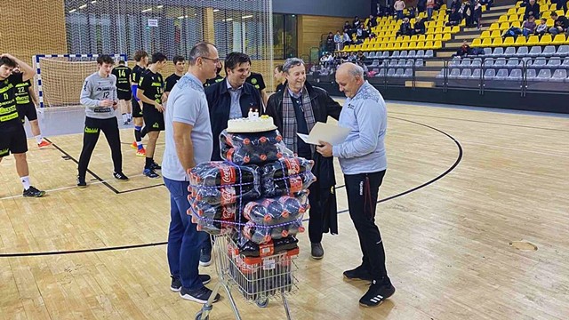 Neće nam zamjeriti rukometaši Rudar Adria Oila, ali njihovu današnju glatku i uvjerljivu pobjedu zasjenio je događaj s početka utakmice. Na njemu je Zdenko Batinić Bećo primio poklon od vodstva kluba i gradonačelnika Labina Valtera Glavičića za 50 godina predanog rada u sportu.