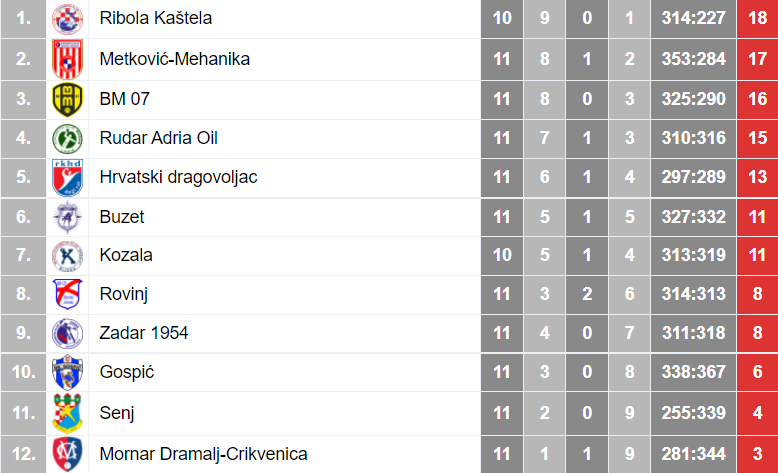 RUDAR ADRIA OIL: Zena 1, Kokot 1, Ratkajec 5, Tomičić, Lazar 6, Vozila, Štucin 1, Dželili, Murselović, Jelušić 4, Dukić 1, Kostić 2, Lukšić 3, Derossi 6, Ajanović, Franković 9
