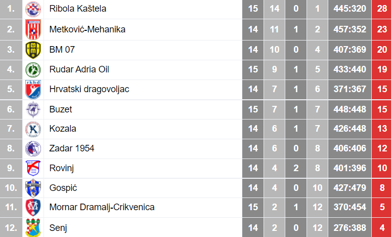 RUDAR ADRIA OIL: Zena, Mandić, Ratkajec 8, Slomić, Tomičić 1, Lazar 4, Vozila 1, Štucin 2, Dželili, Murselović, Jelušić 1, Dukić, Kostić, Lukšić, Derossi 3, Franković 8