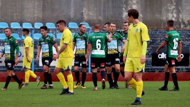 U naredne dvije minute gosti su mogli “potonuti”. Najprije Dario Kazalac nogom brani zicer Rudanu, a onda Uroševićev udarac biva odbijen u korner iz kojeg Načinović glavom pogađa desnu vratnicu rovinjskog gola.