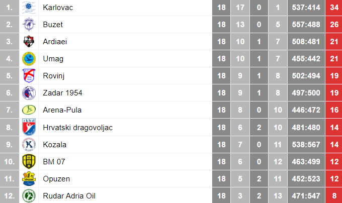 RUDAR ADRIA OIL: Zena, Lučić, Ratkajec, Lazar 1, Štucin 4, Franković A., Dundara 3, Jelušić 3, Matošević, Dukić, Kostić, Derossi 4, Matačić 4