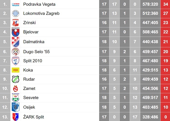 RUDAR: Kamenar, Šumberac 3, Zahtila 1, Bradanović, Vrkić, Belušić D. 3, Pavić, Šegota, Malić, Kremer, Miočinović 3, Đuzel, Ugrin, Jajčević 9