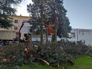 U centru grada, iza labinske pošte, danas se uklanjaju četiri stara arizonska čempresa koji su dosegli svoju biološku starost. Budući da su došli do kraja