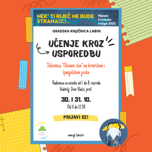 U Mjesecu hrvatske knjige Gradska knjižnica Labin organizira edukativnu radionicu za osnovnoškolce – Učenje kroz usporedbu: Slikovnica „Okovani slon“ na hrvatskom i španjolskom jeziku. Ova